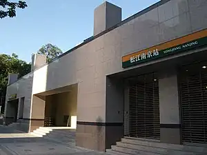 Songjiang Nanjing (Chinese: 松江南京; pinyin: Sōngjiāng Nánjīng) is a metro station in Taipei, Taiwan served by Taipei Metro. It is a transfer station between the Songshan–Xindian line and Zhonghe–Xinlu line. The station opened on 3 November 2010 for traffic on the Zhonghe–Xinlu line, and Songshan–Xindian line services opened on 15 November 2014.