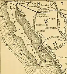 Chinese immigrated to northern Mexico, including Sonora, particularly after the U.S. passed the Chinese Exclusion Act in 1882, first settling in the port of Guaymas. They came as single-male, largely unskilled laborers, but many became small business owners of stores, laundries, and restaurants. As a visible foreign minority, they became the targets of discrimination as their numbers grew. When Sonora began officially tracking foreign residents in 1890, there were only 229 Chinese in Sonora, but by 1910 there were nearly 4,500, a third of all Chinese in Mexico. They formed working relationships with other groups in Sonora, including the working class, local Mexican estate owners, and investors from the U.S. Their enterprises were almost uniformly small-scale and employed only fellow Chinese.[6] With the development of the copper mining settlement and boom town of Cananea, Chinese created the largest of its Sonoran settlements there. The influx of mine workers needed supplies, which Chinese businesses sold. A number of Chinese also entered truck farming of vegetables for local markets, enterprises that did not conflict with the larger scale estates producing cereals, with some haciendas leasing them land not suitable for cereal cultivation.[7] As the presence in the Sonoran economy increased, many Mexicans saw them as a threat as outsiders. The Díaz government facilitated Chinese immigration as part of its larger strategy of economic development that encouraged new business enterprises of foreigners. The platform of Liberal Party of Mexico platform of 1906 had anti-Chinese articles, including banning Chinese immigration.