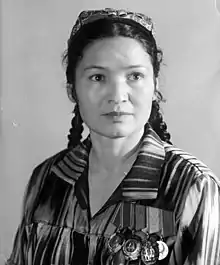 Sora Abdurahmonovna Eshontoʻrayeva (Russified form Sara Ishanturaeva) (Uzbek: Sora Abdurahmonovna Eshontoʻrayeva, Сора Абдураҳмоновна Эшонтўраева, Russian: Сара Абдурахмановна Ишантураева, romanized: Sara Abdurakhmanovna Ishanturaeva; 8 November [O.S. 26 October] 1911 — 8 September 1998) was a Soviet and Uzbek actress. She was one of the first actresses of the Uzbek SSR to gain national prominence. She was described as a "pearl of the Uzbek scene".[1]