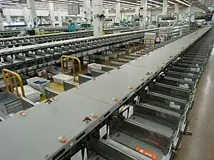 A common type of sorter is a conveyor-based system. While they may be based on other conveyor systems, usually sorters are unique types of conveyors.[1]