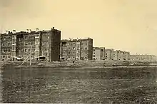 In 1931–1933, city blocks were built, which consisted of residential complexes for 500–1000 people, including 4-storey residential buildings, public buildings and institutions for children. The houses were located parallel to each other, forming two rows, between which greened streets should have been created.