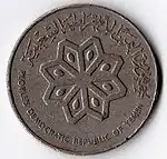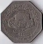 In 1971, coins were issued in the name of "Democratic Yemen", changing to the "People's Democratic Republic of Yemen" in 1973. That year, aluminium 2+1⁄2 fils were introduced, followed by aluminium 10 fils and cupro-nickel 100 and 250 fils in 1981. The 10 fils was scalloped shaped whilst the 100 fils was octagonal.