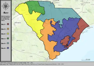 Table of United States congressional district boundary maps in the State of South Carolina, presented chronologically.[8] All redistricting events that took place in South Carolina between 1973 and 2013 are shown.