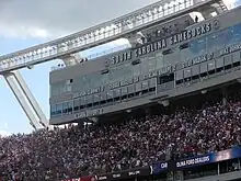 Joe Morrison was hired in 1983 following a one-year stint by Richard Bell.[40] After a 5–6 mark in his first year, the "Man in Black" led South Carolina to a 10–2 record, No. 11 final AP Poll ranking, and a Gator Bowl appearance in 1984. It was also before the 1984 season began that the team removed the Astroturf that had been in place at Williams–Brice Stadium since the early 1970s and reinstalled the natural grass that remains today. The 1984 season included victories over Georgia, Pittsburgh, Notre Dame, Florida State, and Clemson. The 1984 defense was called the "Fire Ant" defense. In 1987, the Gamecocks posted an 8–4 record, No. 15 Final AP Poll ranking, and another Gator Bowl trip.[41] The 1987 Gamecocks were led by the "Black Death" defense, which held seven opponents to 10 or fewer points and yielded just 141 points in 12 games played.[42] Morrison coached his last game in the 1988 Liberty Bowl,[41] as he died of a heart attack on February 5, 1989, at the age of 51.[40] He finished his USC tenure with a 39–28–2 overall record, three bowl appearances, and three seasons with 8 or more wins.[36][41] Due to his on-field success and "Black Magic" image (he traditionally wore all black on the sideline and introduced black uniforms into the team's rotation), Morrison remains a popular figure in Gamecock lore.[43] Morrison also began the tradition at Carolina, with his first game in 1983, of the pre-game entrance of the football team to the beginning of Also sprach Zarathustra, the theme from the film "2001: A Space Odyssey".[44] This is still part of the Carolina football game day experience over 30 years later.[45]