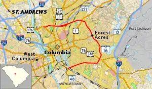 South Carolina Highway 16 (SC 16) is a 9.6-mile-long (15.4 km) primary state highway in the U.S. state of South Carolina that exists mostly within Columbia in Richland County. Its routing is in a backward C-shape.
