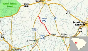 South Carolina Highway 193 (SC 193) is a 6.930-mile-long (11.153 km) state highway in the U.S. state of South Carolina. The highway connects Ward and rural areas of Saluda County.