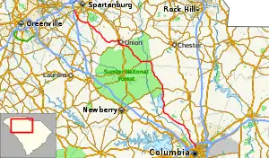 South Carolina Highway 215 (SC 215) is a 96.330-mile (155.028 km) primary state highway in the U.S. state of South Carolina. It serves as an alternate route to Union from either Columbia or Spartanburg.