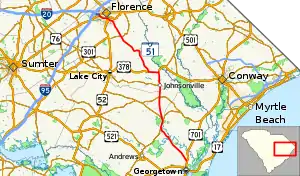 ![]() Map of the Georgetown-Florence segment of SC 51 | ||||