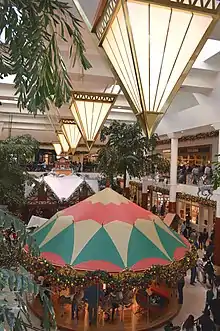 South Coast Plaza is a regional shopping mall in Costa Mesa, California. The largest shopping center on the West Coast of the United States, its pre-COVID sales of over $1.5 billion annually were the highest in the United States.[1] Its 275 retailers represent the highest concentration of design fashion retail in the U.S., with the second highest sales-volume in California at $800 per square foot ($8,600/m2)—second only to Westfield Valley Fair in San Jose-Santa Clara, at $809 per square foot ($8,710/m2). The national average is $411 per square foot ($4,420/m2). The mall is anchored by three Macy's stores, Nordstrom, Bloomingdale's, and Saks Fifth Avenue. The South Coast Plaza is the largest shopping mall in California and the 4th largest in the United States.[2]