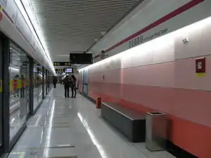 South Lingyan Road (simplified Chinese: 灵岩南路; traditional Chinese: 靈巖南路; pinyin: Língyán Nán Lù) is a station of Line 6 on the Shanghai Metro.[1] It began operation on December 29, 2007, and served as the southern terminus of Line 6 until April 11, 2011, with the opening of Oriental Sports Center station. It is located in Sanlin Town, Pudong. It was previously named Jiyang road. Line 11 passes through the station without stopping. An interchange is available at Oriental Sports Center. Although this station is underground, it is not fully covered.