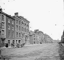 Among the notable buildings on the street is the branch of AIB. This started on its current site as Provincial Bank in 1825, while the current building was constructed between 1863 and 1865.[6] As the street was once a channel of the river, some original 18th century buildings retain evidence of street-level boat houses, while others are built with bricks that were once used as ballast in visiting vessels.[3]