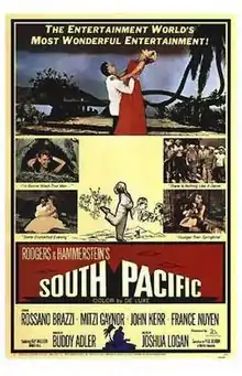 South Pacific is a 1958 American romantic musical film based on the 1949 Rodgers and Hammerstein musical South Pacific, which in turn is loosely based on James A. Michener's 1947 short-story collection Tales of the South Pacific. The film, directed by Joshua Logan, stars Rossano Brazzi, Mitzi Gaynor, John Kerr and Ray Walston in the leading roles with Juanita Hall as Bloody Mary, the part that she had played in the original stage production. The film was nominated for three Academy Awards, winning the Academy Award for Best Sound for Fred Hynes. It is set in 1943, during World War II, on an island in the South Pacific.