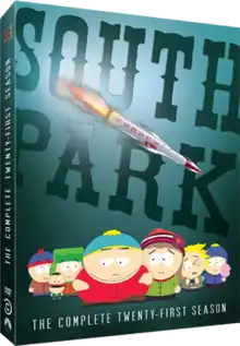 The twenty-first season of the American animated sitcom South Park premiered on Comedy Central on September 13, 2017, and contains ten episodes. This season had planned "dark weeks" (weeks during which no new episodes would air) after episode three, episode six, and episode eight.[1] The season lampooned many events and cultural institutions such as the Trump administration, the Unite the Right rally in Charlottesville, Netflix, the Marvel Cinematic Universe, and themes of self-victimization. The season received mixed to positive reviews, with many reviewers praising the show's ability to remain relevant and choice of abandoning the linear narrative that dominated much of the previous season, despite many of the previous story elements being carried over into this season such as Cartman's relationship with Heidi.[2] The seasons ratings declined overall in comparison to the previous season.[3] The second episode "Put It Down" received an Emmy nomination.[4]