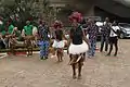 Lobé, only a few kilometres south of Kribi, is another popular spot with tourists due to its even more isolated beaches and the picturesque Lobé Falls (chutes de Lobé), found where the Lobé River empties into the Atlantic. Local artists and vendors frequent the area around the falls, as do drivers offering to take passengers to Kribi or 65 km further south to see the Lala Pygmy village Elogbatindi, .