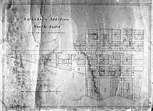 Platted in 1877, it was noted as an addition to "South Austin" rather than Austin, perhaps acknowledging South Austin's separate identity from the capital city. Swisher allotted a very generous 120 foot right-of-way through the center of his grid-style residential addition. The wide avenue was laid out in a direct line with Congress Avenue on the north side of the river. This visionary and civic act dedicated a grand view from Swisher's farm to the public domain.[4] South Congress Avenue, in spite of being separated from the downtown portion of the street by about a mile over the Colorado River and low-lying areas, preserved the major approach to the Capitol and city center for future residents and visitors. A permanent and fully paved connection from Bouldin Creek to the north side of the river would not be complete for another 50 years. Streets were named Monroe, James, Annie, Nellie, Elizabeth, Mary, Johanna, Eva, Newton and Brackenridge. These names have survived to the present.