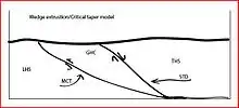 The main problem that the South Tibetan detachment is expected to help resolve is the method of emplacement of the GHC between the LHS and THS within the Himalaya.[5] There are three models that help explain this emplacement: wedge extrusion, channel flow, and tectonic wedging. The wedge extrusion and channel flow models work under the assumption that the STD is a low angle normal fault, while the tectonic wedge model works as if the STD is a thrust fault.[5]