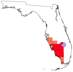 Definitions of the region vary, though its boundaries are generally considered to put it south of the Tampa Bay area, west of Lake Okeechobee, and mostly north of the Everglades and to include Manatee, Sarasota, Charlotte, Lee, and Collier counties. For some purposes, the inland counties of DeSoto, Glades, and Hendry, and the thinly populated mainland section of Monroe County, south of Collier, are also included.[1]