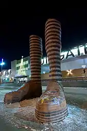 The transit centre features two 20-foot (6.1 m) brick boots, titled Immense Mode, a public art piece by Dawn Detarando and Bryan McArthur.[4]