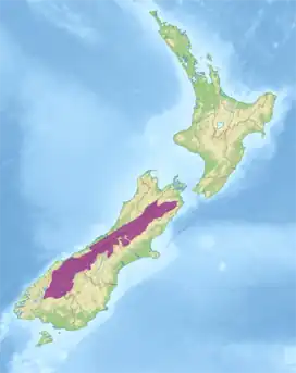 The Southland montane grasslands, also known as the South Island montane grasslands, is a montane grasslands and shrublands ecoregion on New Zealand’s South Island. The ecoregion covers the middle portion of the Southern Alps, and includes extensive alpine grasslands, fellfields, and montane forests.[3][4][5]