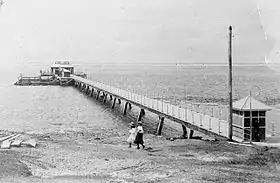 Within a few years, the Southport Pier near the Pacific Hotel had been extended to 900 feet (270 m) and a bathing enclosure was built against the pier for locals and visitors to enjoy protected sea bathing.[23] It was during this same period that construction of the Southport Sea Wall along the foreshore began.[24][25]