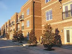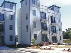 In 1996 the Greensboro City Council approved a bond package that included funding for the redevelopment of the neighborhood and an intensive community planning process followed. This resulted in the Southside Plan—a blueprint that follows the principles of "new urbanism." Existing historic houses are being renovated for owner-occupied residences. New housing features structures that are closely spaced and oriented toward the street with wide front porches. Sidewalks, period street lights, and other amenities add to the turn-of-the century ambiance. New construction also includes townhouses and commercial buildings surrounding a central park-like square.[2] In December 2007, construction on the first two buildings of an eight building apartment complex called CityView Apartments was complete.