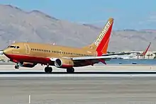 N918WN, a Boeing 737-700, was returned to the lessor and was repainted white in 2020. Throughout 2021, N918WN sat in the desert of the Southern California Logistics Airport in Victorville, California.[44] N918WN was later bought by Avelo Airlines in 2022, and it was re-registered as N707VL.[45] N8619F, a Boeing 737-800, was painted in the "Illinois One" livery in September 2022.[46] |