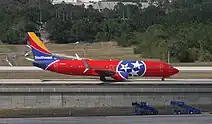 N922WN, a Boeing 737-700, was repainted into the standard "Heart" livery in April 2021 due to paint issues with the "Tennessee One" livery.[53] N8620H, a Boeing 737-800, was painted in the "Tennessee One" livery in September 2022.[54] |