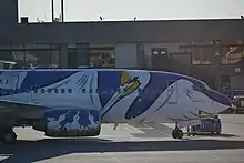 This aircraft has been painted in the "Heart" livery since 2018, but the "Warrior One" decal wasn't reapplied on the nose of N8301J until 2022.[57] |