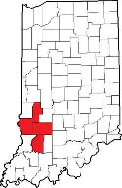 Location of the Southwestern Indiana Athletic Conference within Indiana.