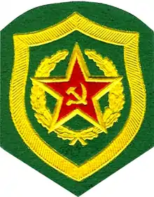 Since the 1920s, the distinctive part of Soviet Border Troops uniform was the medium-green colored parts of headwear and insignia (Russian Empire's Separate Corps of the Border Guard has it distinction since 1893). The color is also present on a maritime Border Troops ensign.