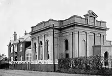By 1848 the spa had fallen out of favour and the Pump Room, together with the Spa Hotel, was put up for sale and offered with a 99-year lease.[15][16] The author and historian Phillis Embry, in her 1997 book British Spas from 1815 to the Present Day, records the Pump Room's use as a baptist chapel in 1857,[17] a function that lasted until at least 1871, noted that year in an article for the East London Observer.[18] By 1880 the pump room had been abandoned completely.[17] In 1896 The Essex Herald reported the attempts being made by a syndicate to recommission the well and to put the building back into use as a pump room.[19] The Pump Room was converted into a private billiard hall in 1904.[20] From 1947 the building was used as a clothing factory[17] before it fell into private ownership.[21] It was designated as a Grade II listed building in 1972.[8]