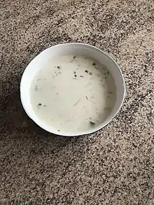 Spas (Armenian: Սպաս) is a yoghurt-based soup.[1][2] It is a traditional dish in Armenia.[1][2] It can be served hot or cold.[1][2] Besides yoghurt (or matzoon), the main ingredient is hulled wheat (i.e. with husks removed), or rice.[1][2]