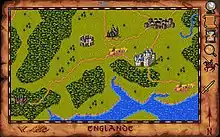 As its name implies, the "map level" shows a multi-screen overview map of Britain, which the player can explore by scrolling. The computer- and player-controlled characters move across the map from place to place and are usually marked by a shield icon with the knight or character's own insignia. To solve the puzzles and mysteries which allow him to proceed through the game, the player must visit key locations and interact with various characters, sometimes enlisting their help and sometimes fighting them. These types of action take place at the "scene level".