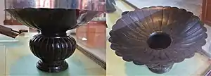 Spittoons have been used in China for a long time; the earliest porcelain spittoon was found in a tomb dating to Emperor Xianzong's reign during the Tang dynasty.[7] During the Qing dynasty and later in Japan, a golden spittoon would be among the numerous objects displayed in front of the emperor at major ceremonies.[8]