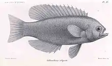 - "Series EUPERCARIA (Incertae sedis): Families CALLANTHIIDAE, CENTROGENYIDAE, DINOPERCIDAE, EMMELICHTHYIDAE, MALACANTHIDAE, MONODACTYLIDAE, MORONIDAE, PARASCORPIDIDAE, SCIAENIDAE and SILLAGINIDAE". The ETYFish Project Fish Name Etymology Database. Christopher Scharpf. 9 March 2023. Retrieved 15 October 2023.