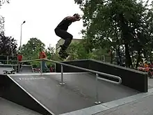 The elements are arranged on a surface lined with paving stones. The facility has artificial lighting and is monitored. The object is for the purposes of physical culture, outdoor activities, skate training, organizing skate competitions and occupations of school physical education. The object can be used to organize other events on the basis of concluded agreements. Use of the skatepark is completely free and available, provided that children under 7 years old can use it under adult supervision.