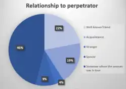 In Europe, Finland outlawed marital rape in 1994.[63] The case of domestic violence in Finland has been the subject of interest and discussion, because Finland is otherwise considered a country where women have very advanced rights in regard to public life and participation in the public sphere (jobs, opportunities, etc.). The country has been made the object of international criticism in regard to its approach towards violence against women.[64] A 2010 Eurobarometer survey on European attitudes on violence against women showed that victim blaming attitudes are much more common in Finland than in other countries: 74% of Finns blamed "the provocative behaviour of women" for violence against women, much higher than in other countries (for instance many countries that are popularly believed to be among the most patriarchal of Europe were significantly less likely to agree with that assertion: 33% in Spain, 46% in Ireland, 47% in Italy).[65]