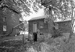 Contributing buildings on this historic property are the brick farmhouse, a brick spring house/smokehouse, and a frame barn. The house was built circa 1817 and is a 2+1⁄2-story, fourteen-room, rectangular building that sits on a rubble stone foundation. It measures 65 feet by 35.6 feet and has a center hall plan.[2]