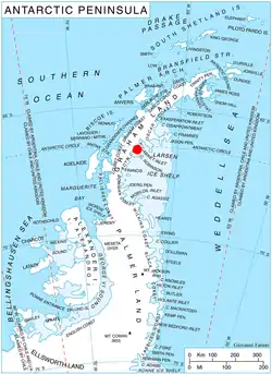 Location of Heros Peninsula in Graham Land, Antarctic Peninsula.
