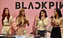 On the afternoon of June 15, Blackpink held a press conference for the release of "Square Up" at M-CUBE, Sinsa-dong, Seoul.[24] On the same day, one hour prior to the mini album's release a countdown special live was broadcast on Naver's V LIVE broadcasting site featuring Blackpink discussing the new music. It garnered over 850,000 viewers.[25] On June 16, "Blackpink Area", a Square Up concept pop-up store was made public to the fans, at the same location where Blackpink House was filmed, for 9 days.[26] On June 23, the group appeared as guests on JTBC's Idol Room to promote the EP, making their debut on the show.[27]