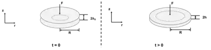 Where is the applied squeezing force, is the initial length of the droplet, is the fluid viscosity, is the width of the assumed rectangular plate, is the final height of the droplet, and is the change in droplet height over time. To simplify most calculations, the applied force is assumed to be constant.