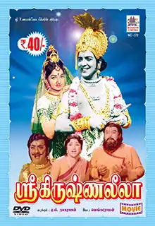 Sri Krishna Leela (transl. The Play of Lord Krishna) is a 1977 Indian Tamil-language Hindu mythological film, written and directed by A. P. Nagarajan.[1] The film was produced by R. M. Subramaniam, with music from S. V. Venkatraman. Sivakumar starred in the title role with Jayalalitha, Srividya, Nagesh, R. S. Manohar taking supporting roles. This also marked Jayalalithaa's last film during the 70s era.[2]
