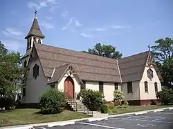St. Alban's Episcopal Church is an active parish in the Episcopal Diocese of New York, in the United States. The building is an historic Carpenter Gothic style church now located at 76 St. Alban's Place in Eltingville, Staten Island. It was built in 1865 as the Church of the Holy Comforter at what is now 3939 Richmond Avenue, the present site of the South Shore YMCA, and was designed by Richard Michell Upjohn, the son of the noted Carpenter Gothic architect, Richard Upjohn. In 1873, the building was split in half and moved to its present location, where it was re-assembled and expanded. In 1951, Holy Comforter absorbed the congregation of nearby St. Anne's Episcopal Church, Great Kills, and changed its name to St. Alban's. St. Anne's had been founded in 1929 as an offshoot of Holy Comforter.[2][3]