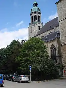 Construction of the church commenced in the 16th century by Augustine friars who had built a convent with a chapel at the same location in 1513. Johannes van Mechelen of Osbach initiated 1508 the foundation of the monastery. The Augustinians decided to build a church there in 1514 but when they were accused of Lutheran sympathies the grounds were taken from them. In 1527 the site was parceled to finance the building of the church.[1] The former convent chapel was expanded and then consecrated as a parish church in 1529.[2] The church was later expanded with a tower in the west and a transept.[1]