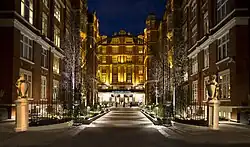 St. Ermin's Hotel is a four-star central London hotel adjacent to St James's Park Underground station, close to Westminster Abbey, Buckingham Palace, and the Houses of Parliament. The Grade II-listed late Victorian building, built as one of the early mansion blocks in the English capital, is thought to be named after an ancient monastery reputed to have occupied the site pre-10th century. Converted to a hotel in 1896–1899, it became during the 1930s, through the Second World War and beyond, a meeting place of the British intelligence services, notably the birthplace of the Special Operations Executive (SOE),[3] and where notorious Cambridge Five double agents Philby and MacLean met their Russian handlers. St Ermin's is now part of Marriott Hotels' Autograph Collection.[4] The hotel is owned by the family of Tei-Fu Chen, founder of Sunrider International.