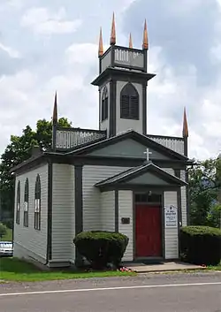 St. John's Episcopal Church is a historic Episcopal church located at Speedsville in Tompkins County, New York. It is timber framed, clapboard-sheathed Federal-style structure built about 1832. It is a three-by-four-bay building and the front facade features a one-stage square belfry. A recessed chancel and service room were added in 1885.[2]