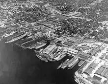 ![]() Aerial view of St. Johns River Shipbuilding Company shipyard, 1950s | |
