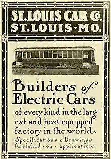 The St. Louis Car Company was a major United States manufacturer of railroad passenger cars, streetcars, interurbans, trolleybuses and locomotives that existed from 1887 to 1974, based in St. Louis, Missouri.