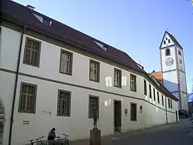 The north wing was used as the town hall. In the south wing the Füssen Town Museum is now located, with displays on the history of the abbey and of the town, particularly of the traditional manufacture of lutes and violins in Füssen.[3] It is also possible to view the Baroque reception rooms of the abbey in the museum.