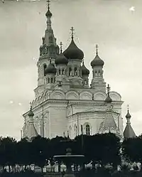 Following the Invasion of Poland of 1939, the city was occupied by the Soviet Union and the church was nationalised and closed for the public. During the German occupation of the city it was briefly restored to Catholics. At the time, the church was allocated to Grodno's Lithuanians and Lithuanian religious services were held in it throughout the war.[1] After World War II the town was permanently annexed by the Soviet Union and the communist authorities turned the church into a warehouse. Finally on November 29, 1961 it was blown up.[2]